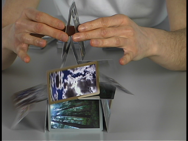 Combining performative, relational exchanges and performance before the camera, this docu-performance-video compiled ten audio interviews with Concordia video students and dept. staff on the subject of family. The resulting sonic montage accompanies this visual landscape: a repeated struggle to build a house of cards.