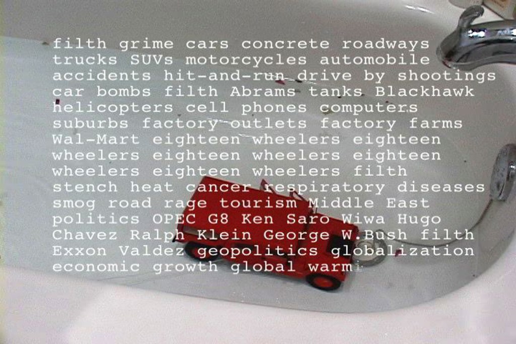 Using Vince Tinguely’s text Oilers as a point of departure, this eight-minute video-poem combines a series of small, intimate, awkward interactions (between myself and a toy Hummer) along with an incisive, lively, politically charged poetic piece about our addiction to oil, written and recorded by Tinguely.